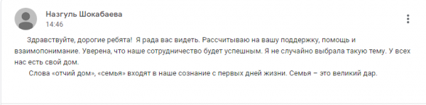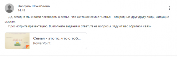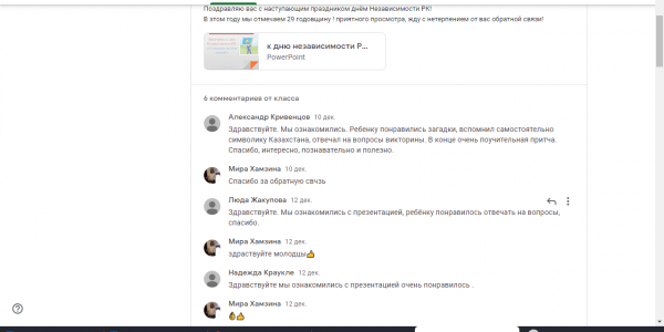 24 декабря, на платформе Сlassroom воспитателем №9 группы Кеңес А.М. был проведен классный час «СЕМЬЯ-ВОЛШЕБНЫЙ СИМВОЛ Ж…