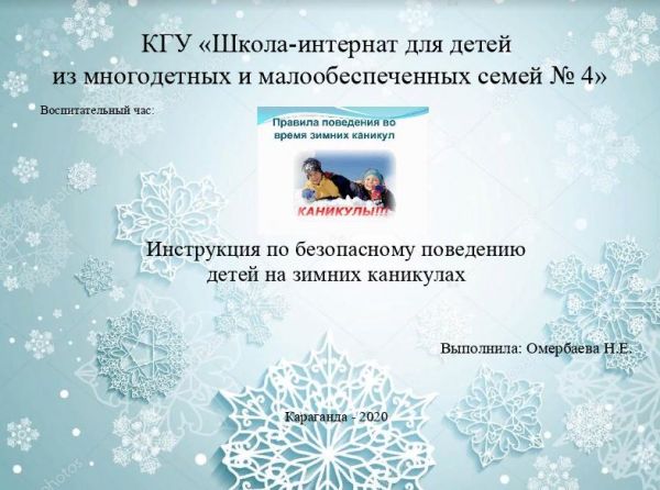 Инструкция по безопасному поведению детей на зимних каникулах