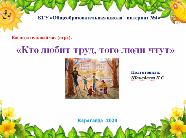 В рамках Дня труда в Казахстане, среди учащихся 6 – 7 классов воспитателем Шокабаевой Н.С., дистанционно был проведён воспитательный час (и…