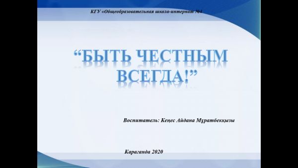 8 октября,на платформе Googleclassroom, воспитателем №9 группы Кеңес А.М., был проведен классный час «Быть честным всегда!» для…