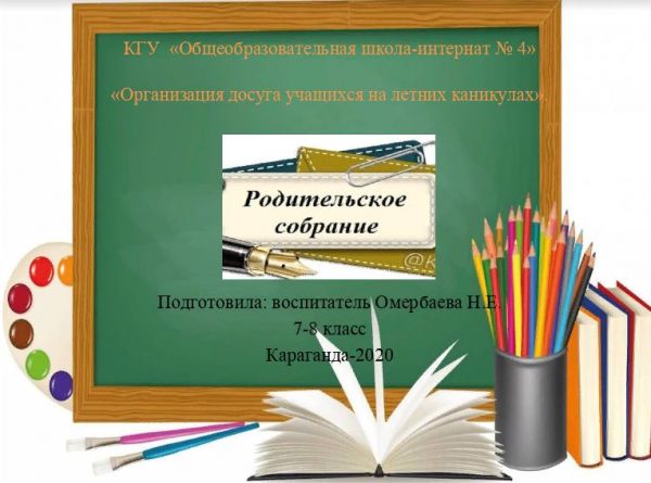 25 мая, на платформе Google classroom, среди 7-8 классов воспитателем Омербаевой Н.Е., было проведено родительское собрание.