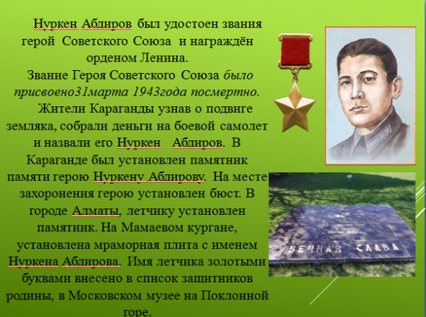 Нуркен Абдиров - герой Советского Союза