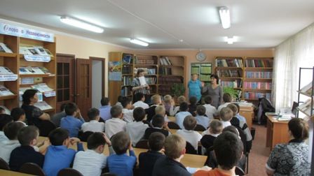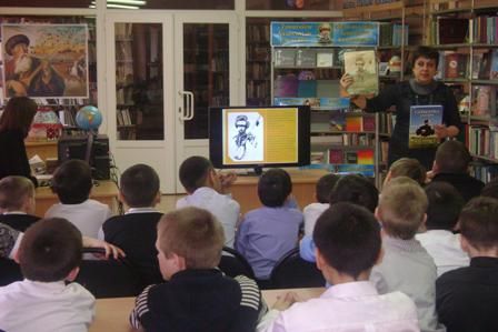 В литературной гостиной читального зала филиала № 16 ЦБС. С воспитанниками школы - интерната № 4, учащимися 4 и 8 классо…