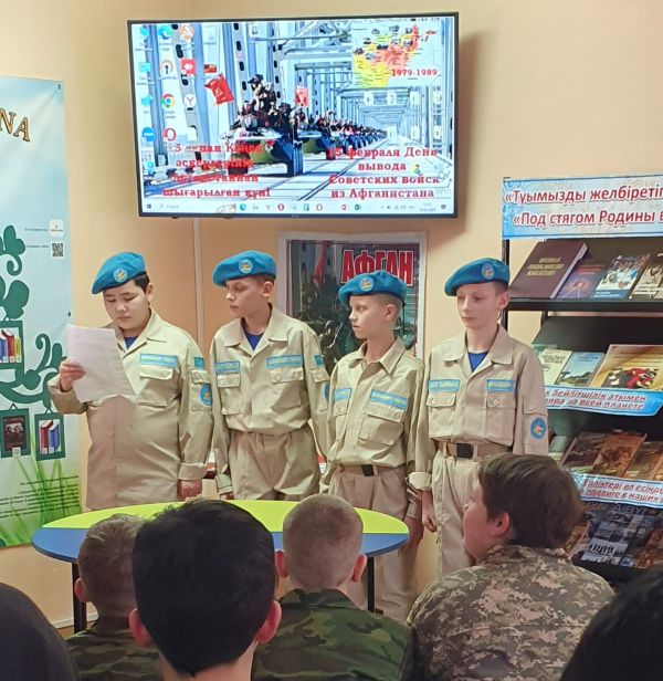 2023 жылғы 14 Ақпанда №16 кітапхана-филиалында кітапхана оқырмандары мен №4 МИ "Жас Сарбаз" сынып оқушыларына арналған "Ауған соғысы жолдарымен" атты ерлік сабағы өтті. Іс-шараны…