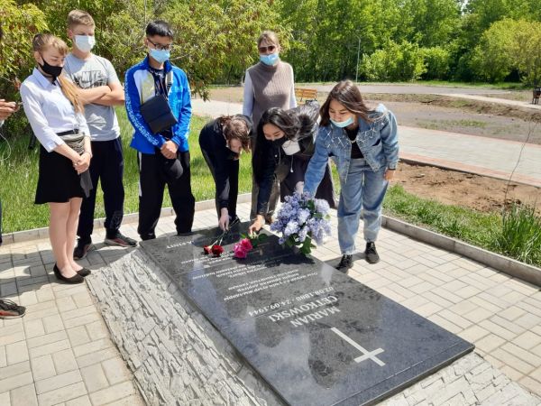 21 мая, учащиеся 9 класса с учителем истории Зубочкиной Е.А. возложили цветы на могилу врача Цетковского Марьяма, который похоронен в парке больни…