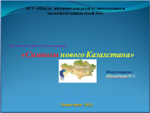 21.05.2021 г., среди учащихся 6 – 7 классов, воспитателем Шокабаевой Н.С. дистанционно был проведён воспитательный час (викторина) на тему «Символы н…