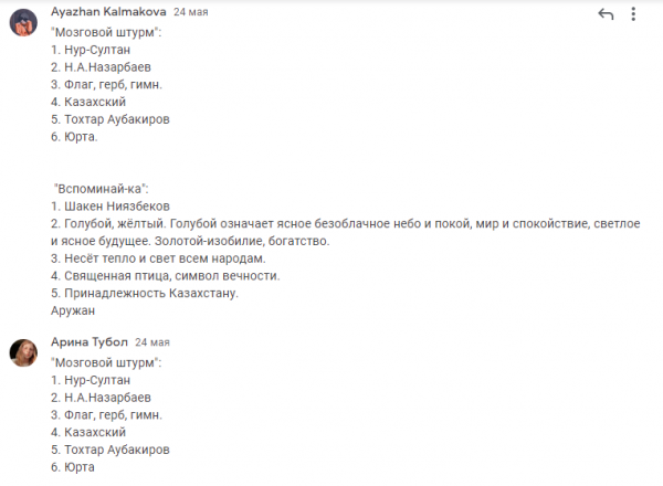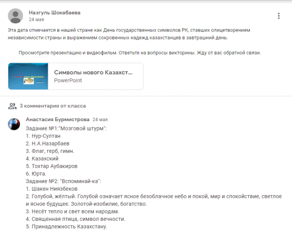 21.05.2021 года, воспитатель Кокенова Ж.Ж. на платформе Гугл класс, провела воспитательный час для учащихся 9 класса.