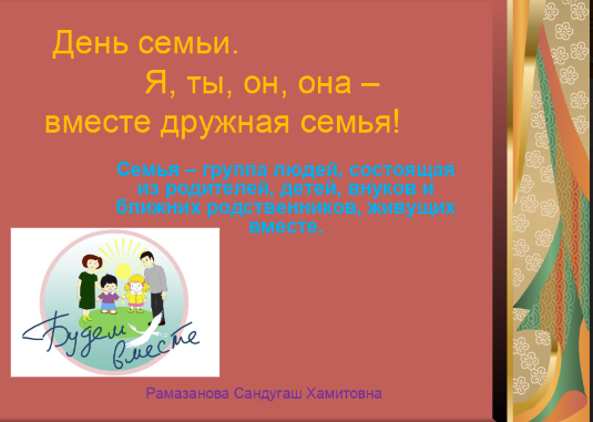 14.05.2021 г., среди учащихся 2-6 классов , воспитателем Молдабековой Т.А. дистанционно был проведен воспитательный час «Моя семья – моя опора!».