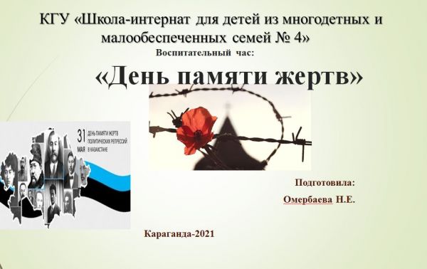 21.05.2021 года, на платформе Гугл класс, среди 8-9 классов воспитателем Омербаевой Н.Е. был проведен воспитательный час, посвященный Дню памят…