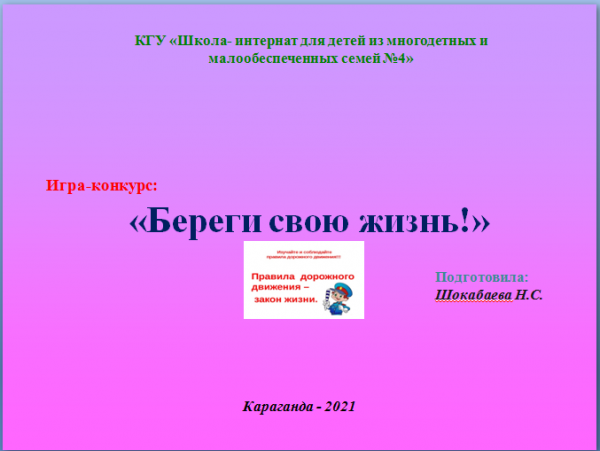 23.04.2021 г., среди учащихся 6 – 7 классов, на платформе Googleclassroom, воспитателем Шокабаевой Н.С. был проведён игровой конкурс по ПДД на…