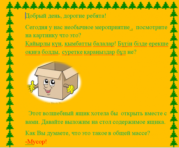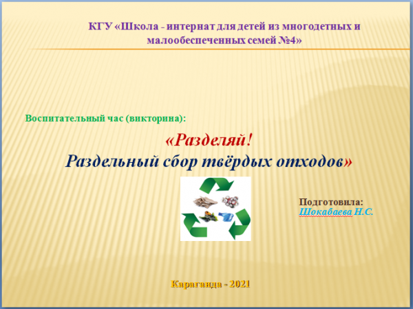 22.04.2021г, в дистанционном формате, среди учащихся 1-3 классов, воспитателем Маштыбаевой.А.Е, был проведен экочас: "Сортируя отходы…