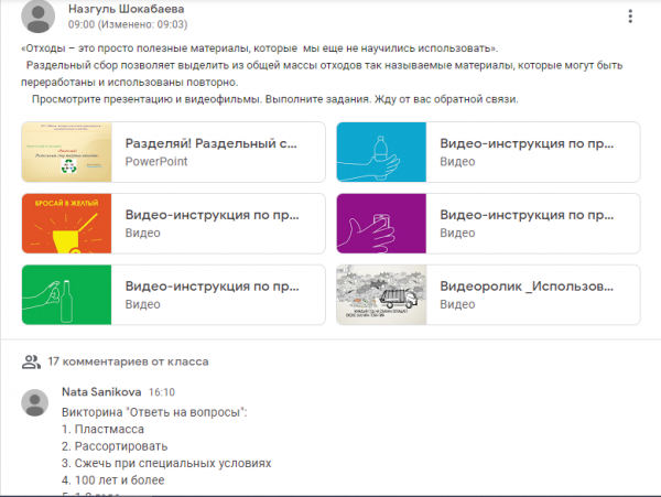 21.04.2021 года, на платформе Гугл класс, среди 8-9 классов воспитателем Омербаевой Н.Е. была проведена беседа в рамках Недели экологической грамотности &la…