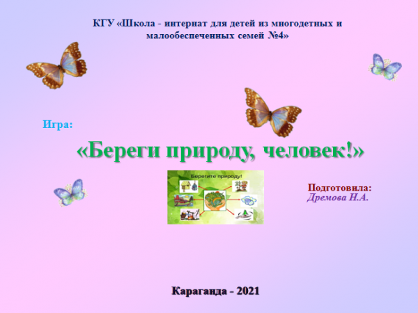 21.04.2021 г., среди учащихся 2-6 классов, воспитателем Молдабековой Т.А. дистанционно был проведен воспитательный час «Природу надо охранять».