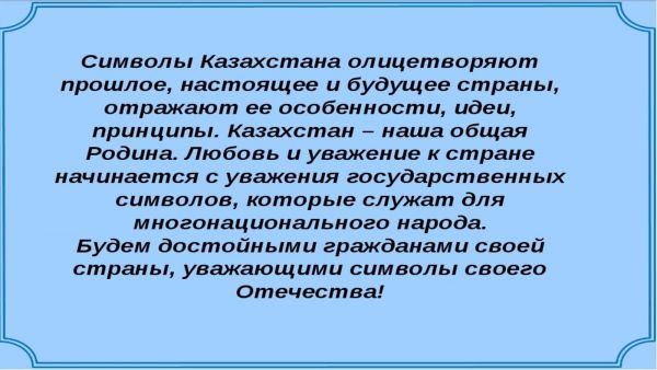 Цель: углубление знаний учащихся о символах Республики Каза…