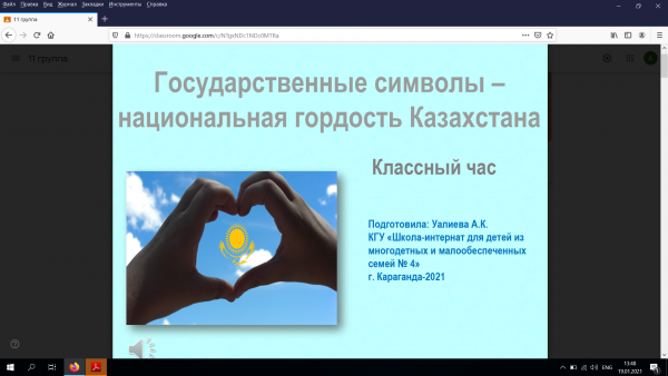 На платформе Гугл классрум, воспитателем Абдраимовой С.Т.был проведён круглый стол на тему:«Государс…