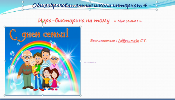 11 cентября,на платформе Гугл классрум, была проведена игра - викторина на тему : «Моя семья!».