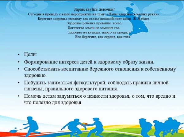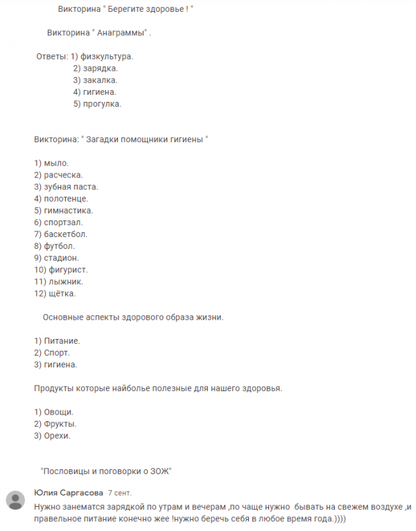 07.09.2020 года, в группе № 2, воспитателем Хамзиной М.Ж, дистанционно был проведён час здоровья.