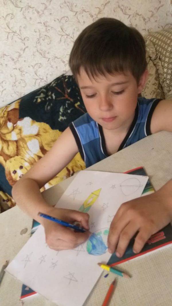 Космос  глазами детей     10 апреля воспитатель Дремова Н.А.  с учащимися 3-го класса (группа № 12) дистанционно провела конкурс рисунков « Космос глазами детей&raqu…