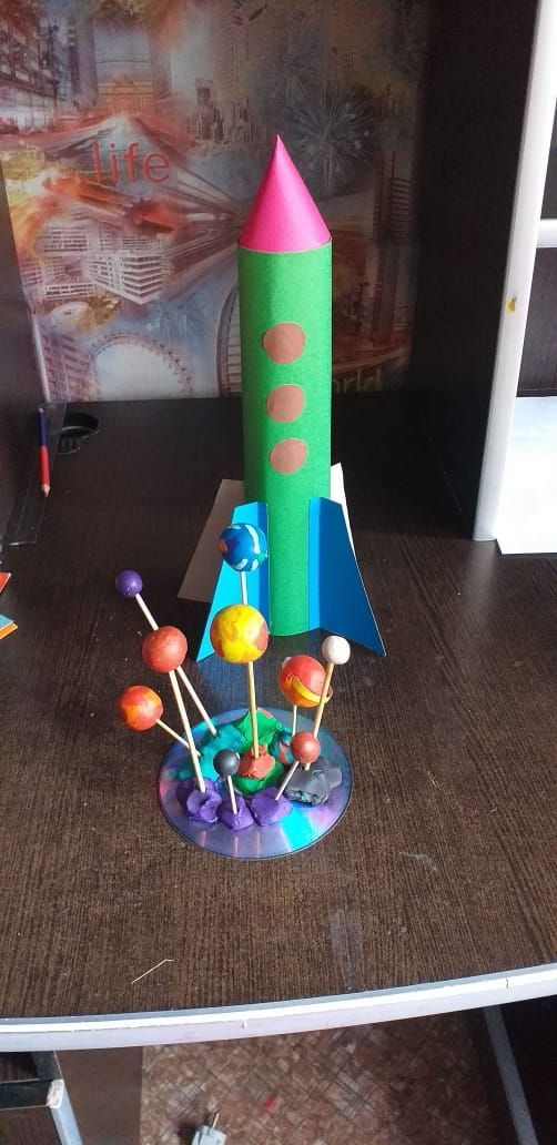 Космическая мастерская     Под таким названием учащиеся 4,6 классов вместе с родителями провели конкурс  творческих работ, посвященных Дню космонавтики.