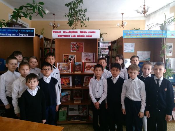 06.05.19 в КГУ №4 в рамках проведения мероприятий посвященных Дню Победы, в школьной библиотеке была оформлена книжная выставка: «Минувших лет живая с…