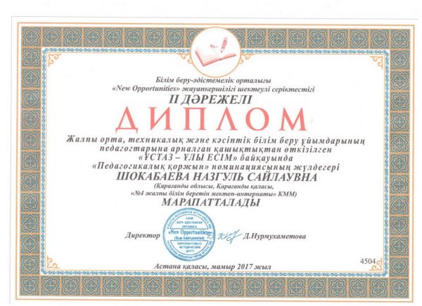 2017 жылдың мамыр айында Астана қаласында болып өткен Республикалық жалпы орта, техникалық және кәсіптік білім беру ұйымд…