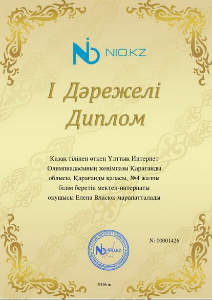 Қазақ тілінен өткен Ұлттық Интернет Олимпиадасының женімпаздары: 5 б сынып оқушылары Жуманбаева Анеля, Жантемирова Замзагуль, Власюк Елена,…