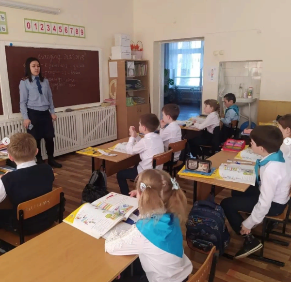 В КГУ "ОСШ № 37" инспектор УИП ГЮП Михайловского ОП капитан полиции Серикбаева Бахытгуль совместно с классными руководителями провела беседу с учащимися начальных классов о правилах дорожн…