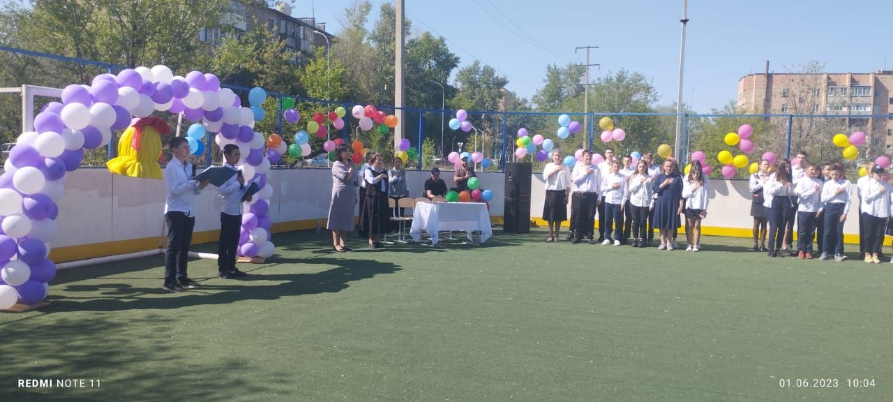 В КГУ ОСШ № 37 в честь окончания учебного года согласно плану воспитательной работы с целью патриотического воспитания был проведен смотр строя и песни.