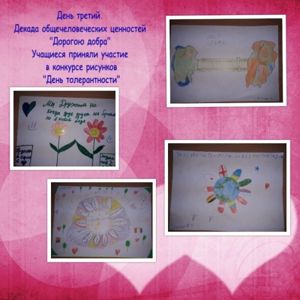 "Жақсылық жолымен" жалпыадамзаттық құндылықтардың онкүндігі. Мектеп оқушылары толеранттылық күніне арналған "толеранттылық планетасы"суреттер байқауына қатысты