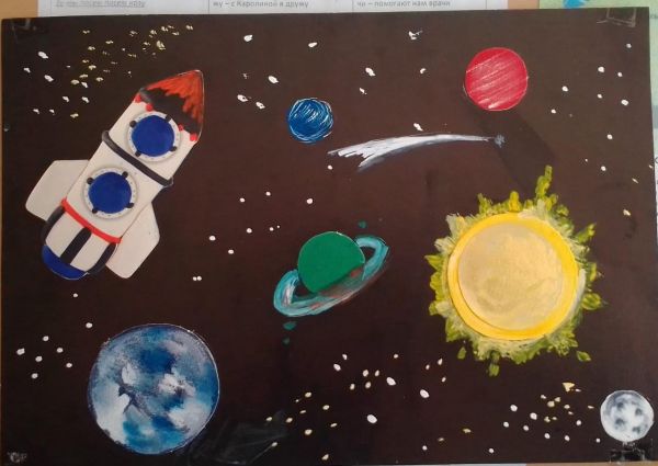 В КГУ ОШ № 37 в период дистанционного обучения проведена онлайн выставка рисунков "День космонавтики"