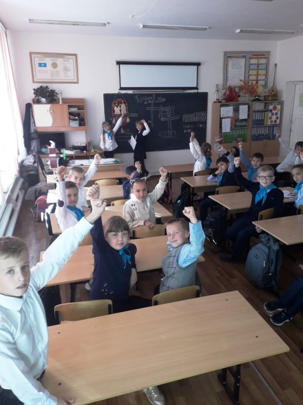 Бүгін, 7 қазан 2019 жылы 4 сыныпта "еріктілер кім?"атты сынып сағаты өтті. Оқушылар: Григоркевич Яна және Нышанбай Аслан, сынып жетекшісі С. М. Лукьяновамен бірге сынып сағатын дайындады.Б…