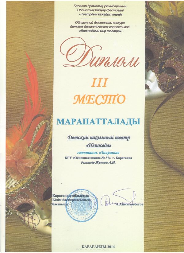 Поздравляем Детский Школьный театр "Непоседы" с занятым 3 местом в Областном фестивале-конкурсе детских драматических коллективов "Волшебный мир театра" за постановку спектакля &…