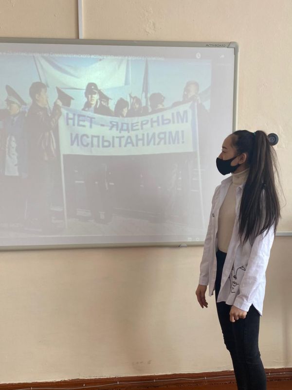 15.03.2021 7 және 9 сыныптарда сынып сағаттары өткізілді 29 тамыз 1991 ж Қазақстан Президенті Н. Ә. Назарбаевтың "Семей ядролық сынақ полигонын жабу туралы" № 409 тарихи Жарлығы шықты.