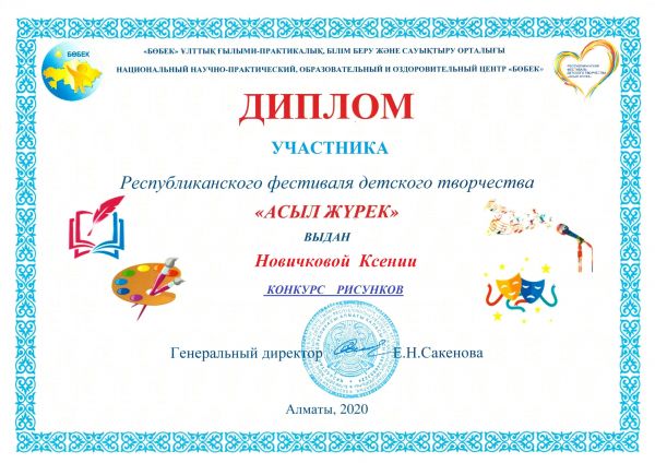 "№37 ЖББОМ" КММ оқушылары Новичкова Ксения, Фрай Лиана, Балантаева Адель және Хамидова Милана күзде "өзін-өзі тану" пәні бойынша "Асыл жүрек"республикалық балалар шығар…