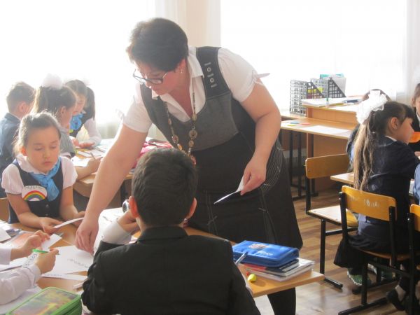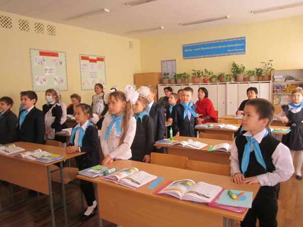 2.02.15 күні Ұлы Жеңістің 70 жылдығына орай бастауыш сыныптар апталығы аясында қазақ тілі пәнінен 4"А"-сыныбында "Етістіктің жіктелуі" тақырыбына Нұртанова Ж.Ж. ашық сабақ өткізд…