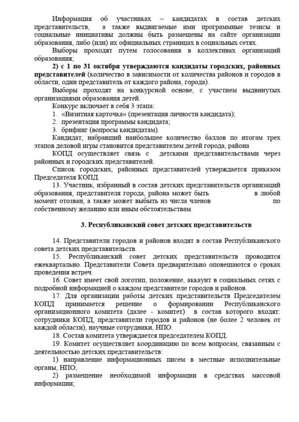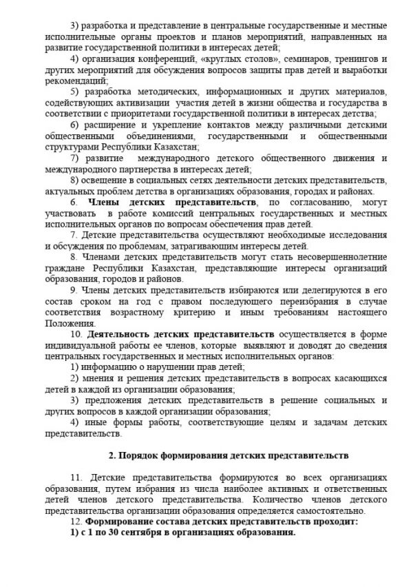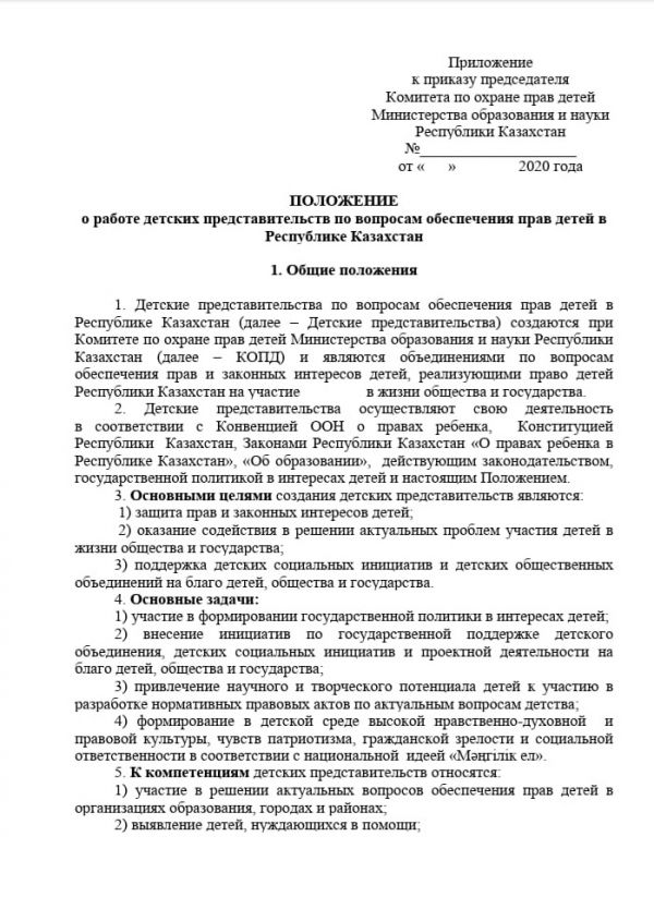 Положение о работе детских представительств по вопросам обеспечения прав детей в Республике Казахстан