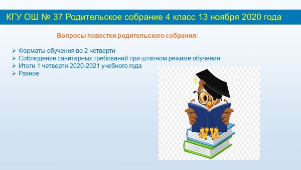 13.11.2020 года в КГУ ОШ № 37 в 4 классе проведено родительское собрание