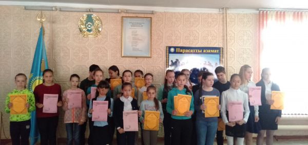 В КГУ "ОШ №37" 03.05.2019г проходил конкурс сочинений на тему : «Я патриот своей страны». На общешкольной линейке были награждены учащиеся 5-9 классов, занявшие I, II и III мес…