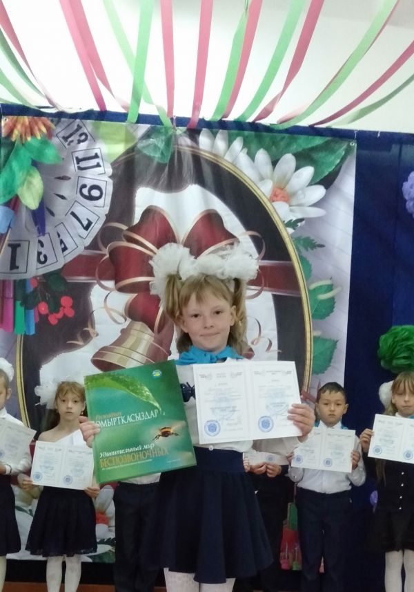 24.05.2019г. На последнем звонке ученица 3 класса КГУ "ОШ №37" Григоркевич Яна награждена Научно-познавательной Энцеклопедией Республиканским центром Дарын за высокие результат…