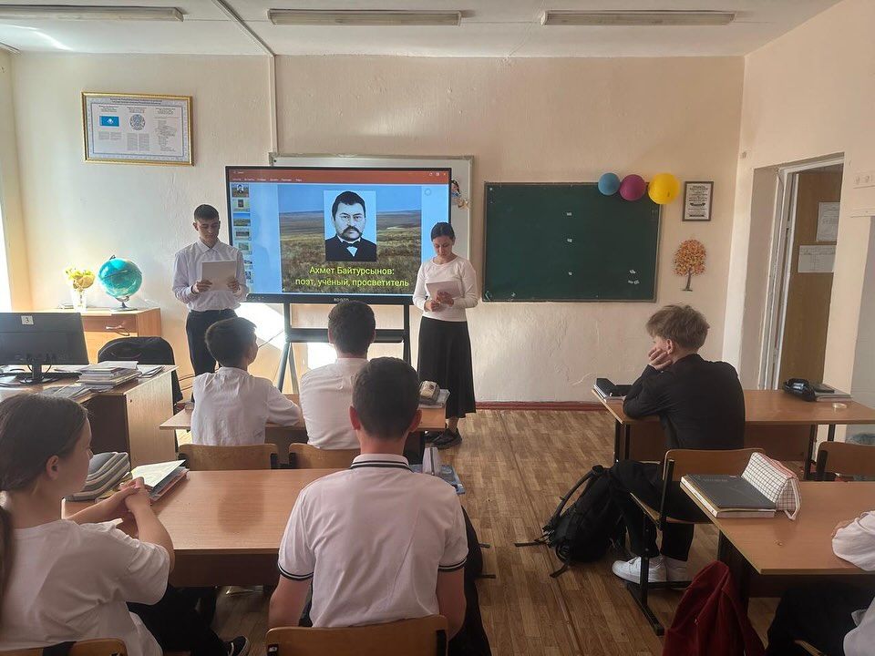 05.09.25 в 9 классе проведено внеклассное мероприятие»Ахмет Байтурсынов - учитель нации». Ребята раскрыли вопросы по биграфии педагога и ученого А. Байтурсынова и вкладу в развитие казах…