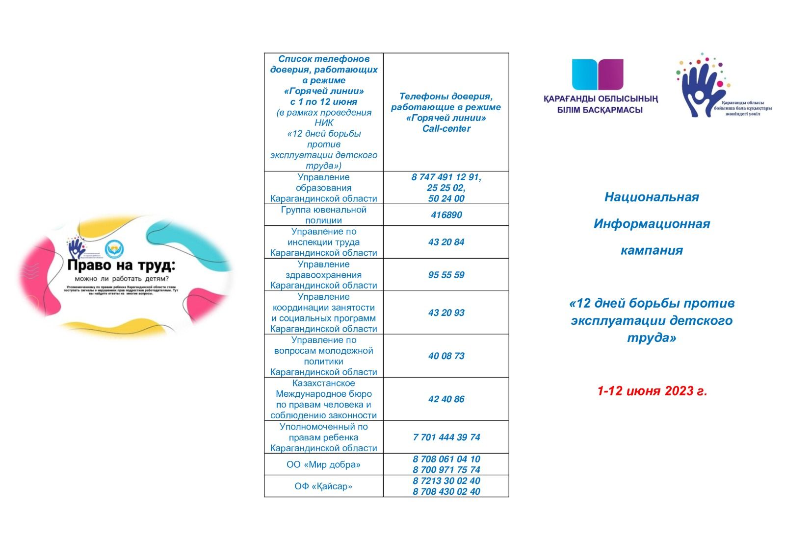 В рамках Общереспубликанской Национальной информационной компании «12 дней против эксплуатации детского труда»