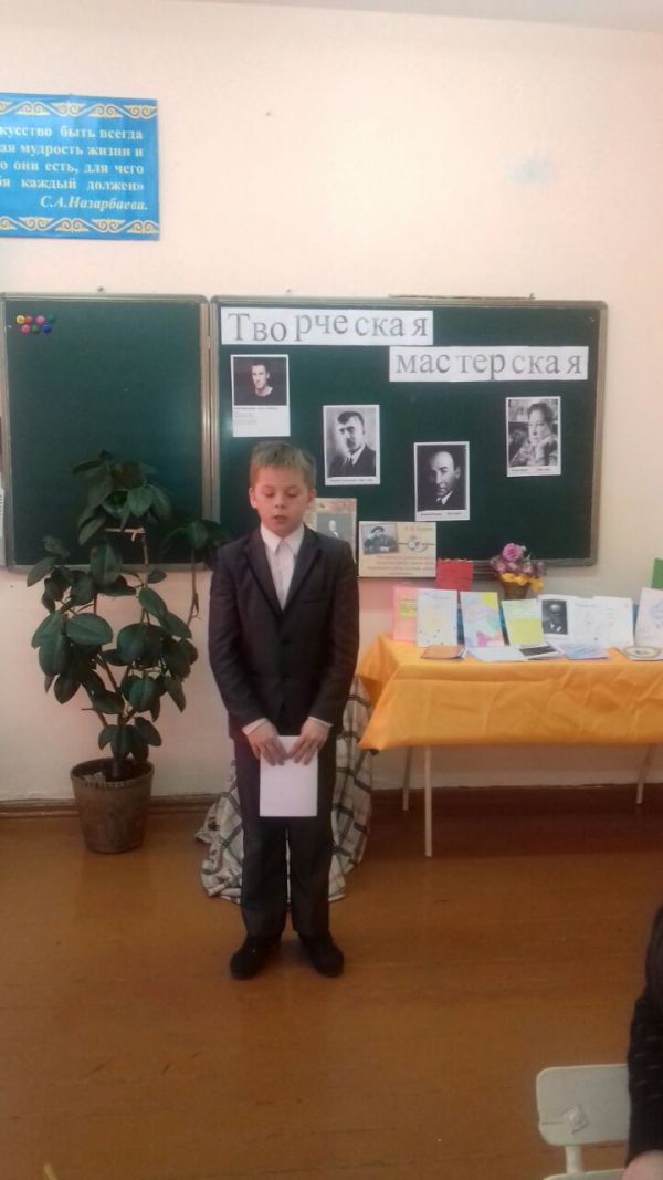 20.01.17 в КГУ "Основная школа 37" прошёл отборочный тур конкурса чтецов "Творческая мастерская", под руководством учителя русского языка и литературы Матвеевой Ю.В.