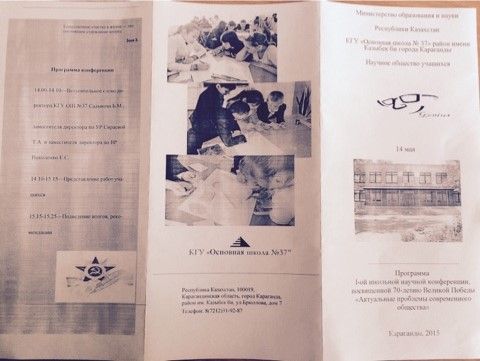 Ұлы Отан соғысының 70-жылдығына орай №37 негізгі мектебінде бастауыш сынып мұғалімі Лукьянова С.М. және қазақ тілі мұғалімі Жумадилова А.А. ұйымдастырған "Атамның жеңісі ол менің жеңісім"…