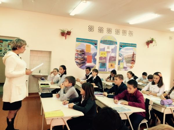 На уроке.