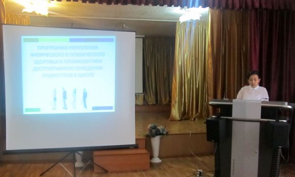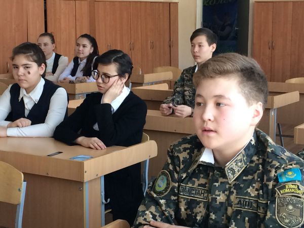 17 қарашада 11 сынып оқушыларына ЖИТС-ке қарсы күрес тақырыбында Қарағанды аймақтық алдын алу және бақылау орталығының мамандары бейнефильм көрсетті