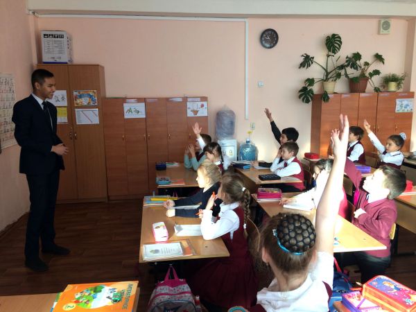 21 қарашада № 58 ЖББОМектебінде құқық қорғау органдарының өкілі - ГЮП ОМПС аймақтық инспекторы А.А. Жакупов  8-сынып оқушылары үшін «Дүниежүзілік балалар күні» акциясына арналған &l…