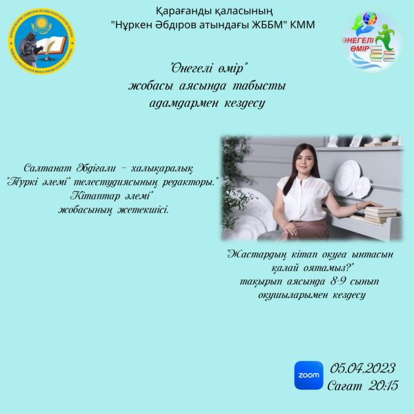 05.04.2023 «ХХІ ғасыр – сауатты ұрпақ ғасыры» атты оқу сауаттылығы апталығы мен «Өнегелі өмір – табысты тұлғалармен кездесу» жобасы аясында халықара…