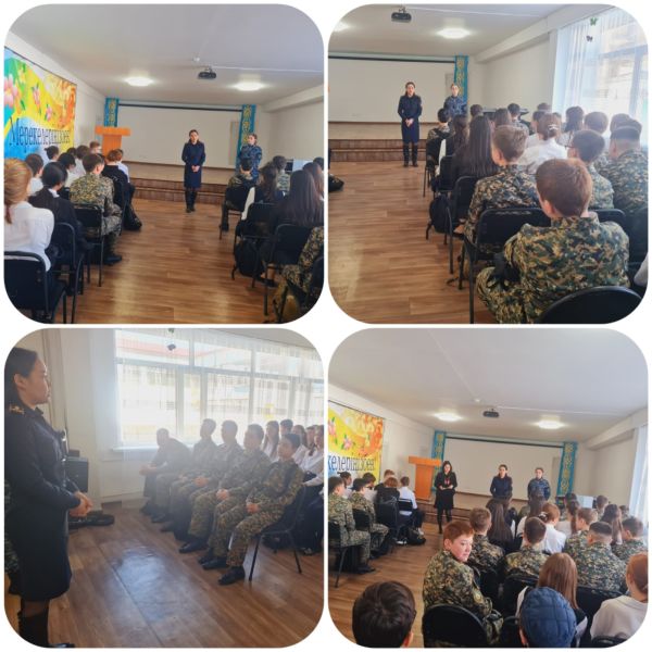 03.04.2023 года с учащимися 9 классов в КГУ «ОШ им.Н.Абдирова» УИП ГЮП ОМПС Центрального ОП провели беседу