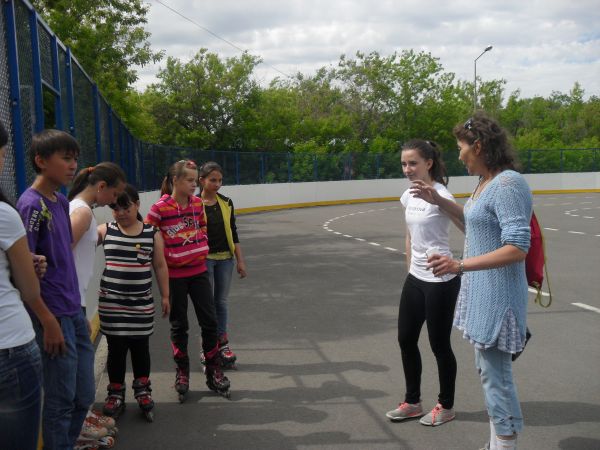 Ребята отряда постигали мастерство на роликодроме. Выпускница школы, кандидат в мастера спорта РК Ильичева Евгения провела мастер-класс техники владения коньками.