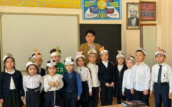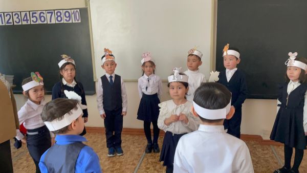 Оқу сауаттылығы апталығы аясында 1"А"сынып оқушыларының "Жыл басына таласқан хайуанаттар " ертегісін рөлге бөліп сомдауы.